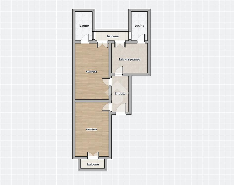 L'immobile, che si presenta in stato originario, è composto da: ingresso su disimpegno, due comode camere da letto, sala da pranzo, angolo cottura, wc, ripostiglio e due balconi di cui uno su prospetto principale.